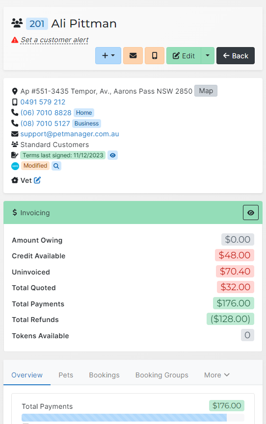 Unlimited Pet & Customer Records with comprehensive information - vaccination records, bookings, finanical records - invoices & payments, credits & refunds, packages, extras, services, notes, journal, documents, gallery and so much more.